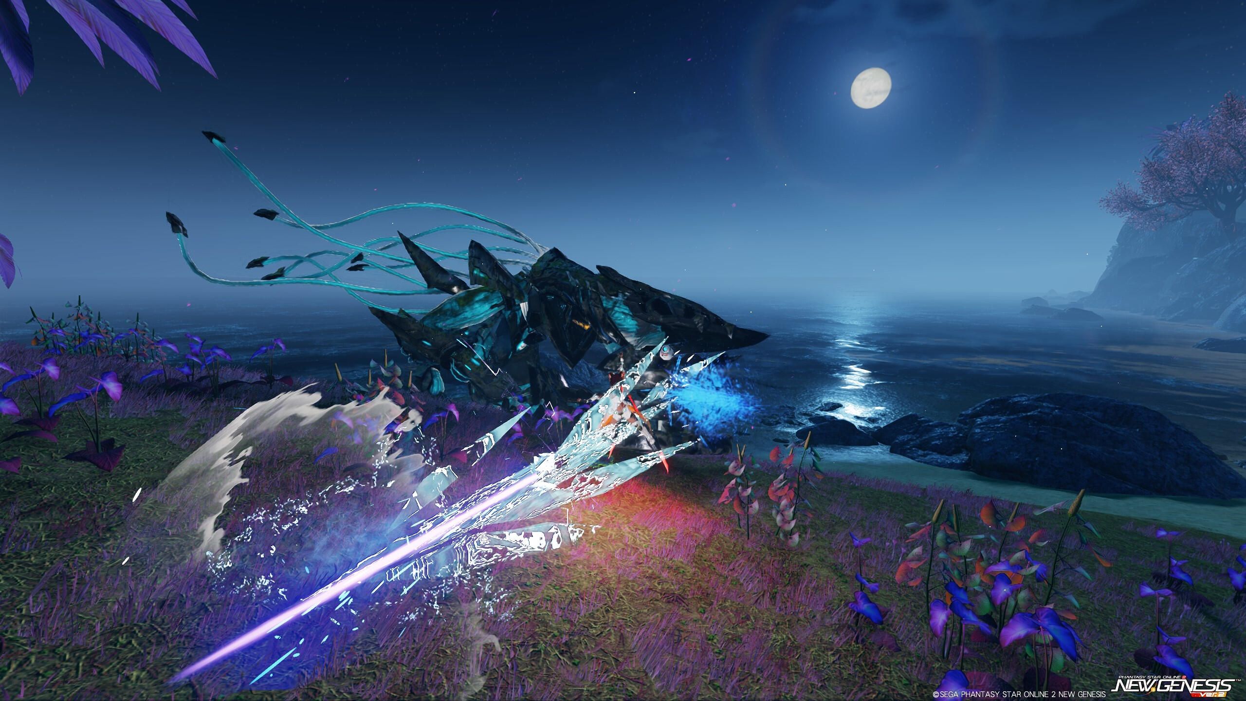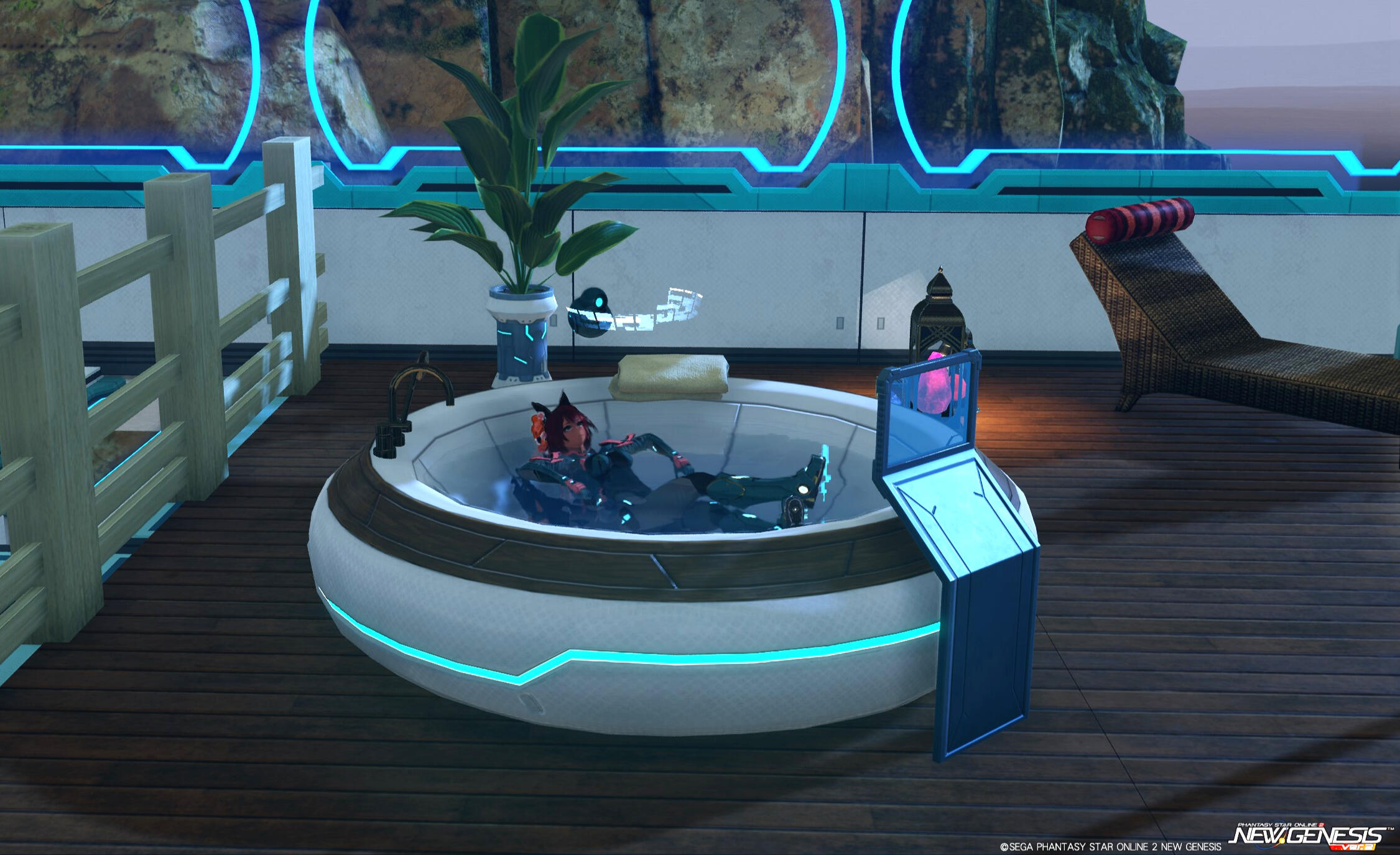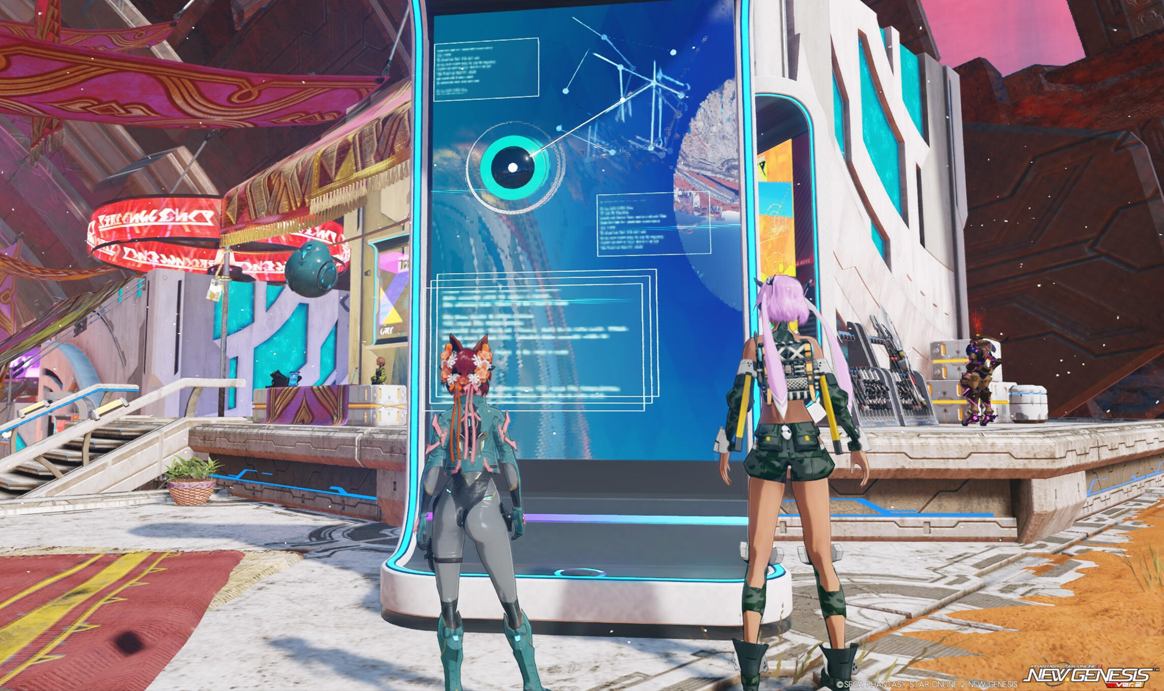 Yep, that's me! Anime Babbit with the fox ears. Our time away from Eorzea has taken us to a number of places, from Tyria to Middle-earth to...Yu-Gi-Oh Land, and now I'm sitting in a space cafe next to a fountain in Central City. What's the planet we're on called? I don't actually know, don't worry about it. Halpha, Lopp says.It's hard to say you've found a new "home" when you've only been someplace for a few days, but spending a little time in Phantasy Star Online 2: New Genesis Central City, I already feel like I've found a new place to just chill out. Middle-earth is great, don't get me wrong, and I'm far from finished there. But here? Glamours everywhere, customization galore, and fun space iceskates that I can fly around on and blast ice bolts at my enemies? What more do you want!