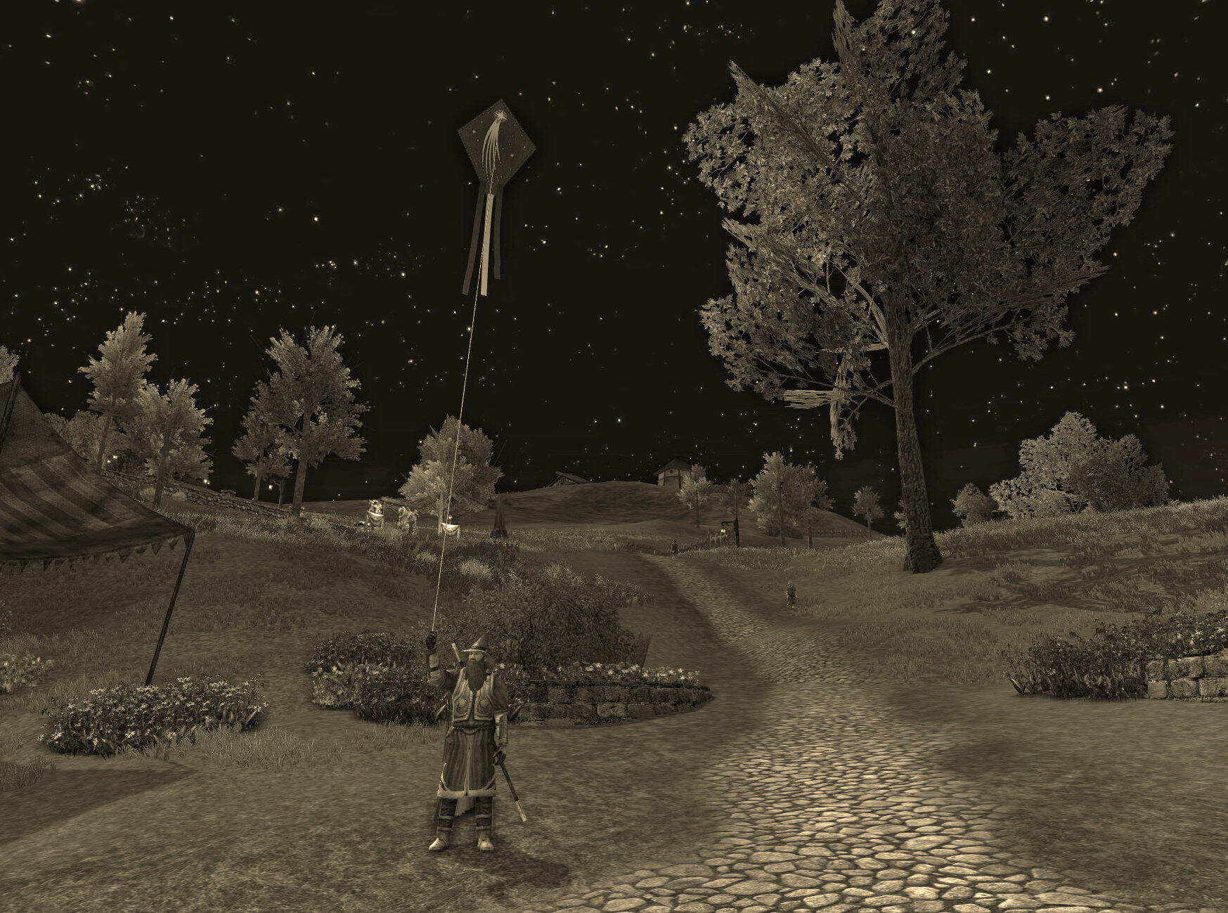As festivities come to an end in Bywater, a photograph shared with The Bree-land Babbler shows a lone man standing quietly flying his kite in what can only be described as wistful sorrow. Did he forget to spend his tokens? Does he miss fishing chairs and paper out of the nearby pond? Will he ever feel happiness again? Worry not, mystery adventurer - the faire will return next year!