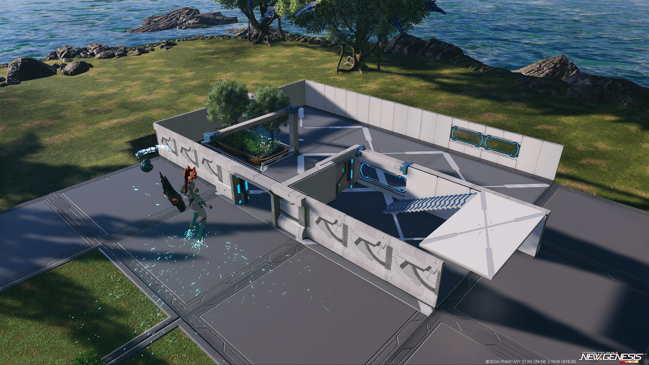 After that, I gathered fruit from some trees, and then got to work on building my new house.You heard me. Housing in Eorzea and Middle-earth may involve going up and buying an estate and furnishing the property (and eventually risking it exploding if you don't pay your dues), but on Halpha? You show up, they give you an island, and tell you to go build the whole thing yourself. You could even build a small neighborhood if you really wanted to!For now, I'm just recreating Nophica's. But it'll be Space Nophica's, and nicer, and also not called Nophica's, because I don't actually know who that is, anymore. Some herbalist back in ancient times, who really cares? The writers sure don't!